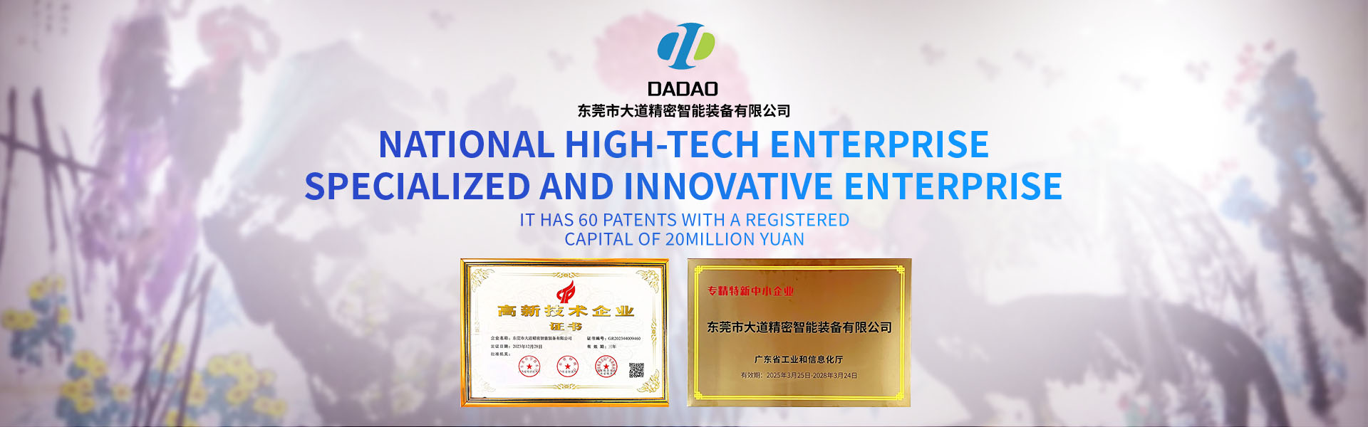 大道精密成立于2019年,公司注冊(cè)資本1000萬(wàn)元,擁有辦公室、廠房等18,000多平方米。已通過(guò)ISO9001:2015國(guó)際質(zhì)量管理體系認(rèn)證,擁有國(guó)家各類專利共計(jì)58項(xiàng),獲得“中國(guó)大道.商標(biāo)”和“一帶一路十周年 .國(guó)禮品牌”等榮譽(yù)稱號(hào),屬于國(guó)家高新技術(shù)企業(yè),專精特新中小企業(yè)。2023年4月成立了“東莞市大道精密智能裝備有限公司關(guān)心下一代工作委員會(huì)”,是東莞市企石鎮(zhèn)工商聯(lián)副會(huì)長(zhǎng)單位、東莞市企石鎮(zhèn)文學(xué)藝術(shù)界聯(lián)合會(huì)副主席單位、東莞市環(huán)保包裝行業(yè)協(xié)會(huì)副會(huì)長(zhǎng)單位、東莞市數(shù)控裝備行業(yè)協(xié)會(huì)第二屆會(huì)長(zhǎng)單位、廣東省包裝技術(shù)協(xié)會(huì)常務(wù)理事單位、廣東省膠粘劑行業(yè)協(xié)會(huì)理事單位、國(guó)家標(biāo)準(zhǔn)《機(jī)械安全中安全防護(hù)授權(quán)系統(tǒng)的基本要求》起草單位。